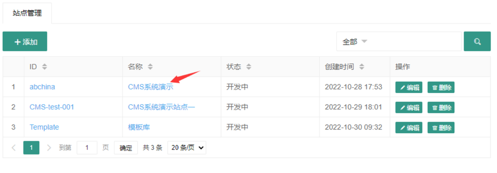 进入站点配置,点击指定站点名称,则可以打开该站点的前台首页,实现整站预览功能,预览到的站点页面与发布后的页面一致。
