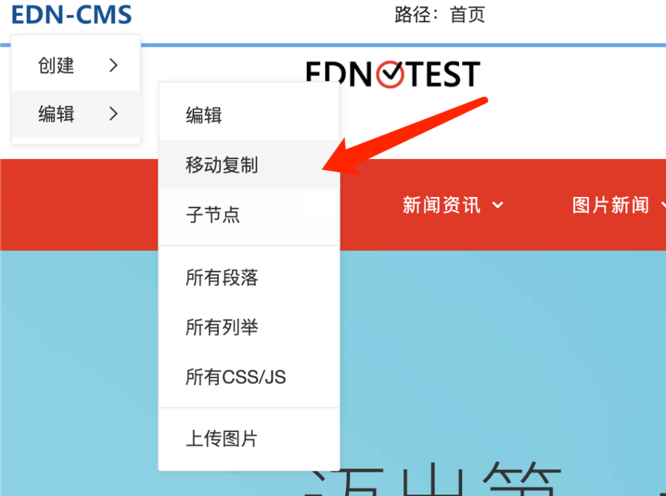 依次打开前端管理导航菜单的编辑、复制