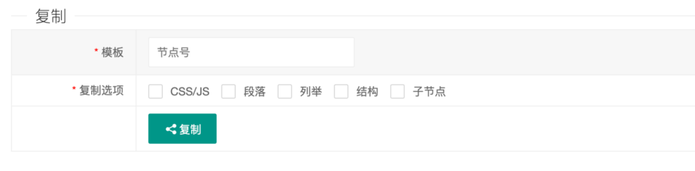 在复制功能界面中,输入要复制栏目的首页节点号,并勾选复制段落、复制列举、复制结构、复制子节点。后单击提交,系统会把指定栏目的所有内容复制到该站点下,此功能也适用于栏目合并或者只复制栏目的结构和模板样式,不复制内容,或只复制模板样式,结构和内容都不复制。