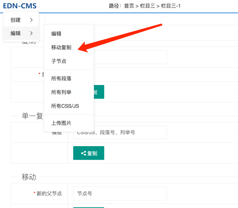 在打开的新界面中,输入要移动到的新的父节点,提提交,则可以把该栏目所有内容,包括栏目首页一起移动到指定的新的栏目节点下