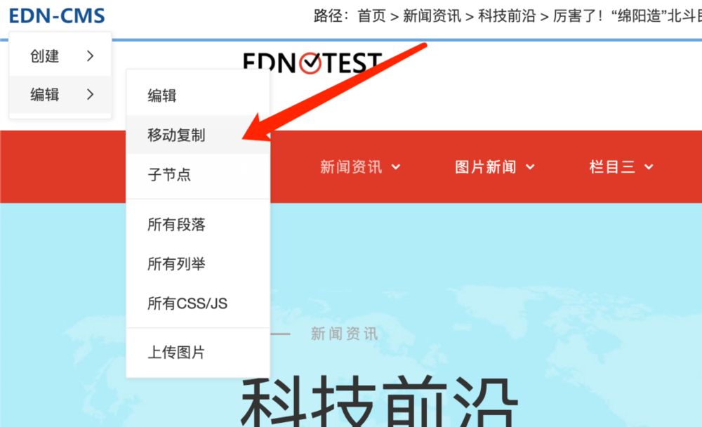 首页 > 第二章 功能应用说明 > 2.5 文章管理 > 2.5.16 文章移动 2.5.16 文章移动 1、支持将文档从一个栏目移动到其他栏目,文档的“所属栏目”属性由原来的栏目变成了移动后的栏目; 管理员登录后,进入前台,切换到前台编辑状态,定位到指写栏目 比如:首页 > 新闻资讯 > 科技前沿 然后打开编辑>移动 在打开发对话窗中,输入要的栏目节点号 如勾选只移动子节点,则只会把“科技前沿”栏目下的所有新闻文章移过去。不勾选则会同时把“科技前沿”栏目主页也移过去。 同理可以去移动某一个新闻节点页面。