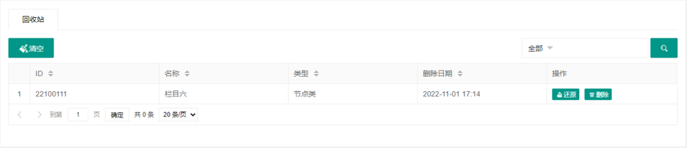 管理员登录后,进入默认站点的后台管理菜单,依次打开站点管理,回收站,可以看到已经删除到回收站的模板三元素(段落、列举、CSS/JS)