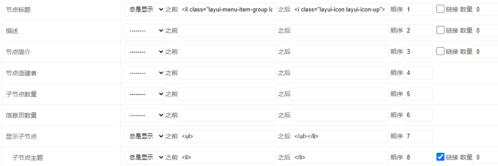 通过列举,控制列出节点的内容,再加以列出内容的前后代码控制即可实现,如下图: