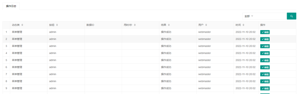 记录管理员用户的操作行为,记录内容包括时间、用户、事件类型、事件是否成功等。